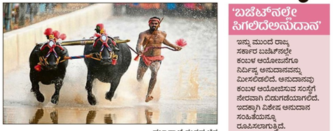 - ಕರ್ನಾಟಕ ಕ್ರೀಡಾ ಪ್ರಾಧಿಕಾರವು ಕರ್ನಾಟಕ ರಾಜ್ಯ ಕಂಬಳ ಅಸೋಸಿ ಯೇಷನ್ಗೆ ಅನುದಾನ ನೀಡಲಿದೆ.