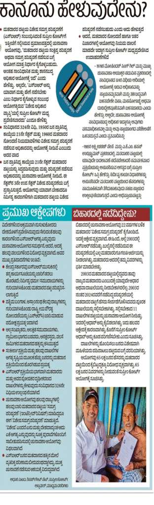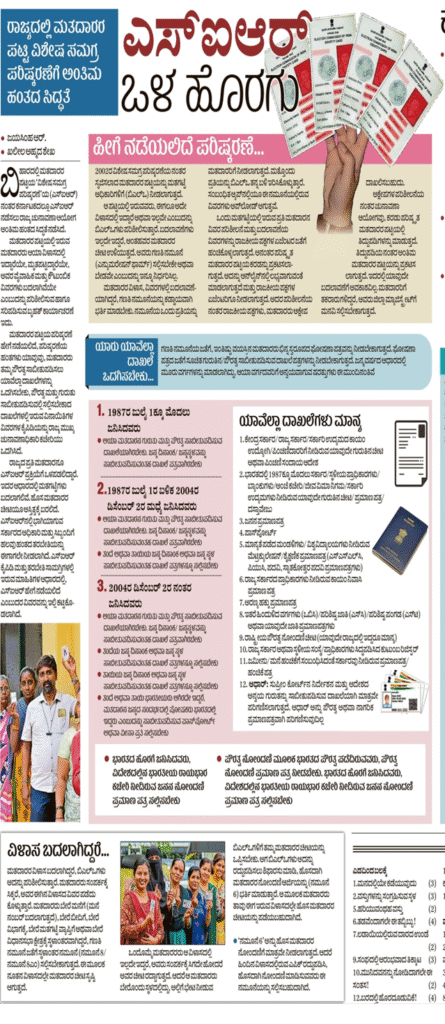 ಸಂದರ್ಭ: ಬಿಹಾರದ ಮಾದರಿಯ ಲ್ಲಿಯೇ ರಾಜ್ಯದಲ್ಲಿಯೂ ಮತದಾರರ ಪಟ್ಟಿಯ ವಿಶೇಷ ಸಮಗ್ರ ಪರಿಷ್ಕರಣೆ (ಎಸ್ಐಆರ್) ನಡೆಯಲಿದೆ. ರಾಜ್ಯದ ಎಲ್ಲ ಮತದಾರರು ಎಸ್ಐಆರ್ಗೆ ಒಳಪಡಲಿದ್ದು, ಮತದಾರರ ಗುರುತಿನ ಚೀಟಿ, ಮತದಾರರ ಪಟ್ಟಿ ಮತ್ತು ಮತಗಟ್ಟೆಗಳು ಬದಲಾಗಲಿವೆ.