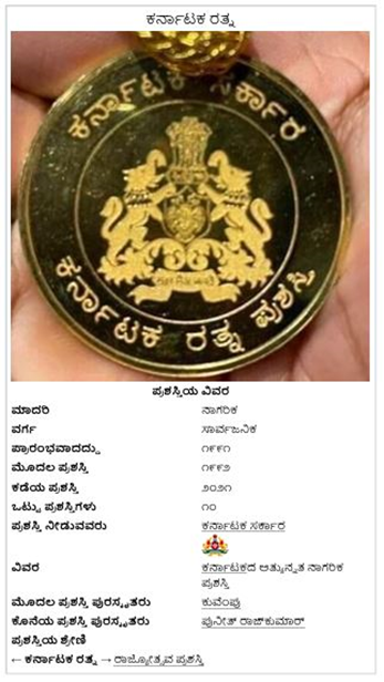 - ಬಿ. ಸರೋಜಾದೇವಿ ಅವರ ಸಾಧನೆ ಪರಿಗಣಿಸಿ ರಾಜ್ಯ ಸರ್ಕಾರವು ಇತ್ತೀಚೆಗೆ ಅವರಿಗೆ ಮರಣೋತ್ತರವಾಗಿ ‘ಕರ್ನಾಟಕ ರತ್ನ’ ಪ್ರಶಸ್ತಿ ಘೋಷಿಸಿದೆ.