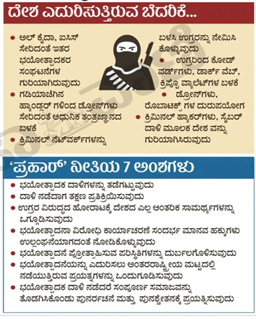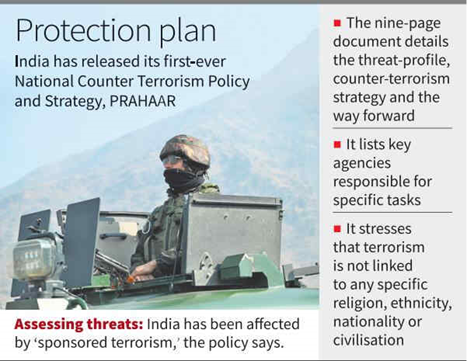 Context: PRAHAAR states that India faces terrorist threats on all three fronts — water, land and air; the policy adds that capacities have been developed to protect critical sectors of the economy