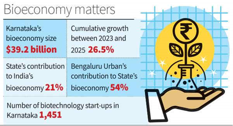 - “Karnataka’s innovation ecosystem — anchored in research institutions, start-ups, and global R&D centres— has transitioned from being research-heavy to production-oriented and globally competitive,” reads the report, which pins the State’s contribution to India’s bioeconomy at 20.63%.