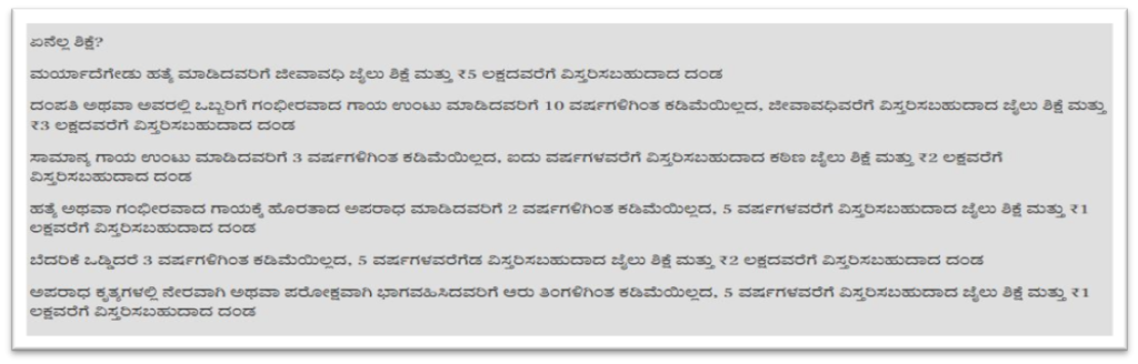 - ಖಾಸಗಿ ಉದ್ಯಮ ಮತ್ತು ಸಂಸ್ಥೆಯು ನಿಗದಿಪಡಿಸಿದ ಶೇಕಡಾವಾರು ಪ್ರಮಾಣದಲ್ಲಿ ಕನ್ನಡಿಗರಿಗೆ ಉದ್ಯೋಗದಲ್ಲಿ ಮೀಸಲಾತಿ ನೀಡದಿದ್ದರೆ ಅಥವಾ ಅದಕ್ಕಿಂತ ಕಡಿಮೆ ಮೀಸಲಾತಿ ನೀಡಿದ್ದರೆ ಅಂತಹ ಸಂಸ್ಥೆಗಳಿಗೆ ರಿಯಾಯಿತಿ ದರದಲ್ಲಿ ಭೂಮಿ, ತೆರಿಗೆ ರಿಯಾಯಿತಿ ಅಥವಾ ತೆರಿಗೆಯ ಮುಂದೂಡಿಕೆ, ಸಹಾಯಧನ ಮತ್ತು ಇತರ ಸೌಲಭ್ಯಗಳನ್ನು ಪಡೆಯಲು ಅರ್ಹರಿರುವುದಿಲ್ಲ.