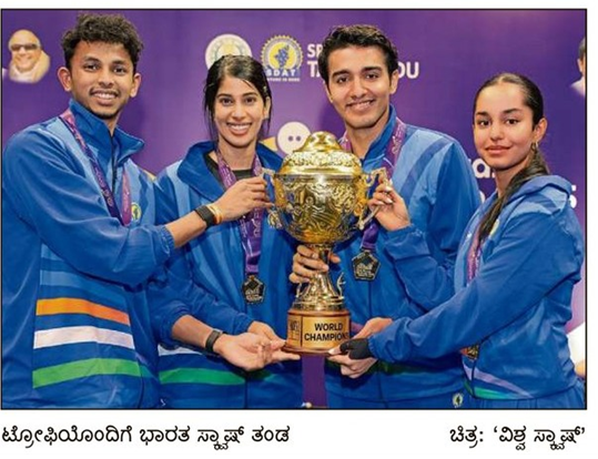 ಸಂದರ್ಭ: ಭಾರತ ಸ್ಕ್ವಾಷ್ ತಂಡವು ಇದೇ ಮೊದಲ ಬಾರಿ ವಿಶ್ವಕಪ್ ಜಯಿಸಿ ಚಾರಿತ್ರಿಕ ಸಾಧನೆ ಮಾಡಿತು.