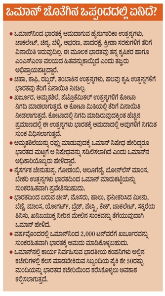 ‘ಭಾರತ ಮತ್ತು ಒಮಾನ್ನ ವ್ಯಾವಹಾರಿಕ ಸಂಬಂಧವು ತಲೆಮಾರು ಗಳಿಂದ ನಂಬಿಕೆಯ ಬುನಾದಿಯ ಮೇಲೆ ನಿಂತಿದೆ. ಉಭಯ ದೇಶಗಳ ನಾವು ಪರಸ್ಪರ ಮಾರುಕಟ್ಟೆಗಳನ್ನು ಅರ್ಥಮಾಡಿಕೊಂಡಿದ್ದೇವೆ’ ಎಂದಿದ್ದಾರೆ.