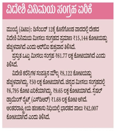 ವಿದೇಶಿ ಕರೆನ್ಸಿಗಳ ಸಂಪತ್ತಿನ ಮೌಲ್ಯ ₹8,122 ಕೋಟಿಯಷ್ಟು ಹೆಚ್ಚಳವಾಗಿದ್ದು, ₹50 ಲಕ್ಷ ಕೋಟಿಯಾಗಿದೆ. ಚಿನ್ನದ ಮೀಸಲು ಸಂಗ್ರಹದಲ್ಲಿ ₹6,795 ಕೋಟಿ ಏರಿಕೆಯಾಗಿದ್ದು, ₹9.65 ಲಕ್ಷ ಕೋಟಿಯಾಗಿದೆ.