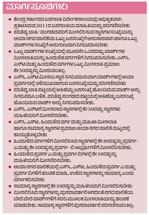 ಈ ಸಮಿತಿ ಡಿ.12ರಂದು ಸಭೆ ನಡೆಸಿದ್ದು, ವಾರ್ಡ್ ಮೀಸಲಾತಿ ನಿಗದಿಗೆ ಮಾರ್ಗಸೂಚಿಗಳನ್ನು ಹೊರಡಿಸಬೇಕು ಎಂದು ಅಭಿಪ್ರಾಯಪಟ್ಟಿತು. ಅದರಂತೆ, ಡಿ.19ರಂದು ಮಾರ್ಗಸೂಚಿಗಳನ್ನು ಹೊರಡಿಸಲಾಗಿದೆ.