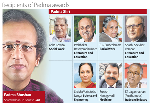 Shatavadhani R. Ganesh and former BJP Rajya Sabha member Prabhakar B. Kore are among the eight personalities from Karnataka to feature on the list of Padma awardees this year, announced on the eve of Republic Day.